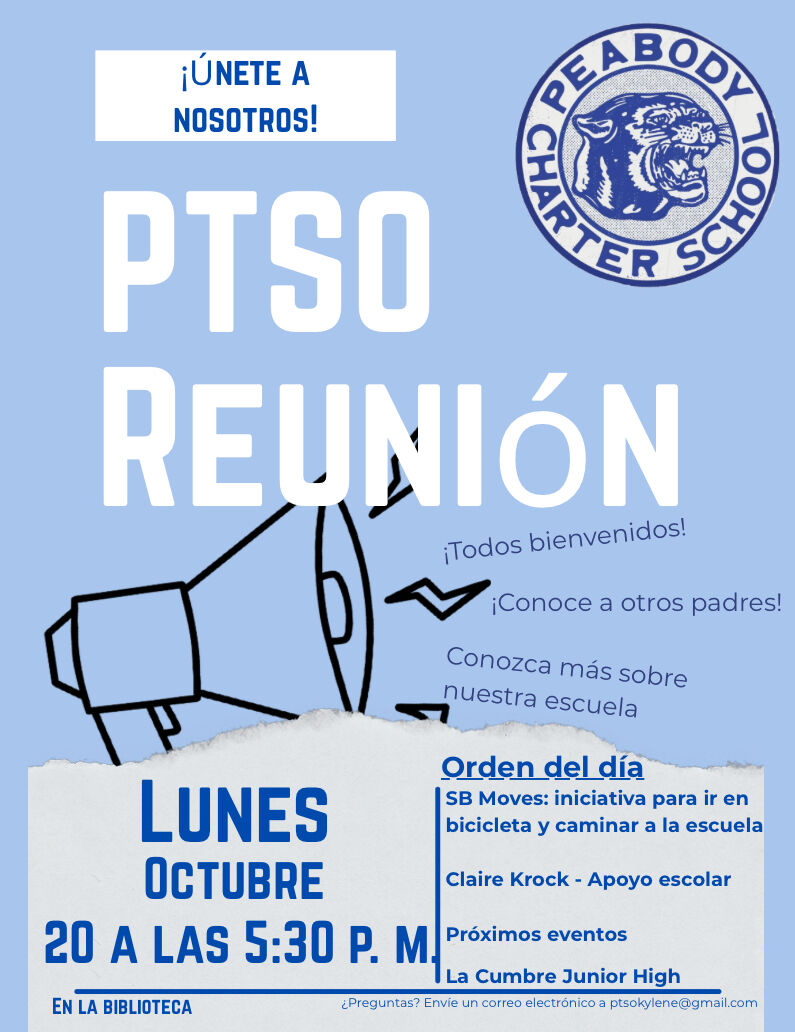 Hope to see you there! We have a really great meeting lined up with the Principal from La Cumbre Junior High (upper grade families you don’t want to miss this), Ms. Krock sharing about instructional supports here at Peabody, and SB Moves coming to discuss walking and biking to school.